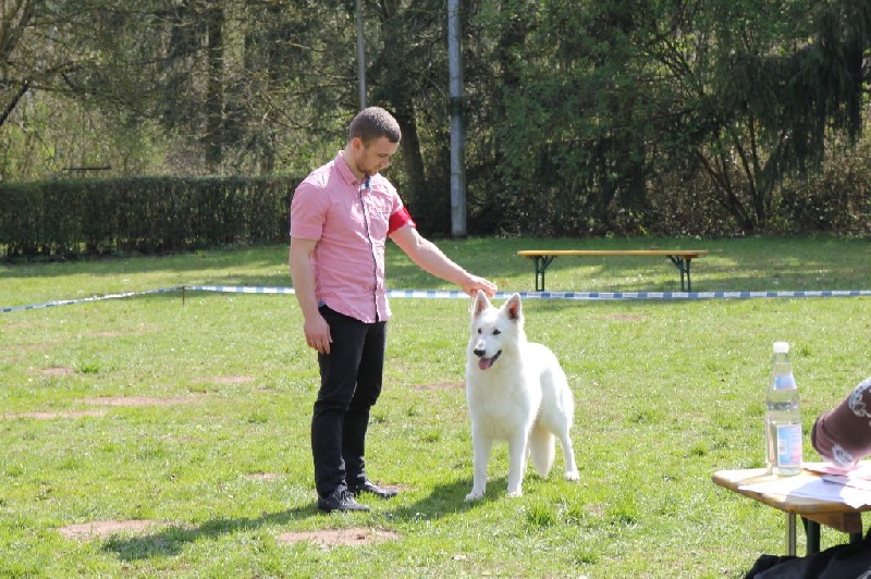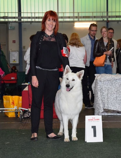 Elle a hérité de la puissance de son papa Joyfull White Angel Beloved One "Rocky". Elle suit avec succès les traces de son papa sur les rings d'expositions! Nous lui souhaitons, comme à sa soeur Java une belle carrière!