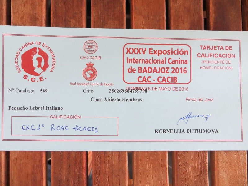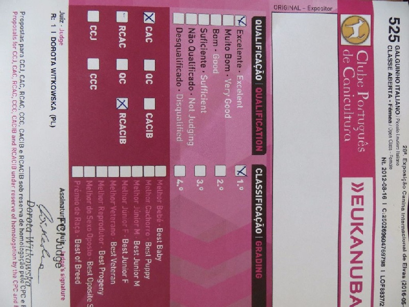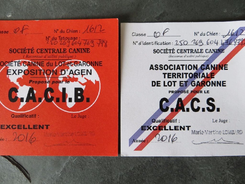 - )Classe Ouverte : 1ere EXC CAC RCACIB CACIB récuperable