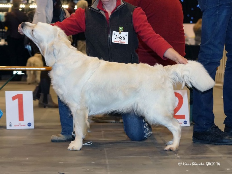 Chienne typée. Bonne longueur de cou. Tête féminine. Bon développement devant.Bonne angulations avant et arrière.DCC. Bonne ligne de dos. Bonne qualité de fourrure. Bon aller/retour. Bonne allure latérale. Couvre le terrain facilement.