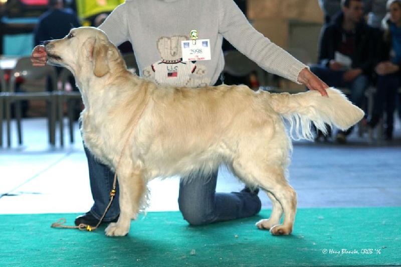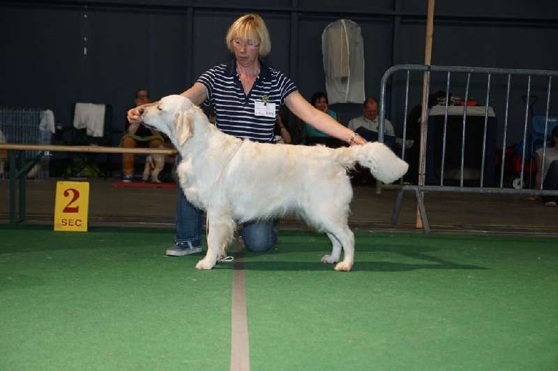 3 ans. Joli modèle harmonieux.Jolie tête féminine.Ex. pigment. Bonne sortie d'encolure. Bonne ligne de dos + attache de queue correcte. T.B angulation avant, bon sternum, TB angulation arrière,jarret droit, EX. poitrine bien développée. Bonne présentation. EX. démarche. Garde sa ligne de dos.