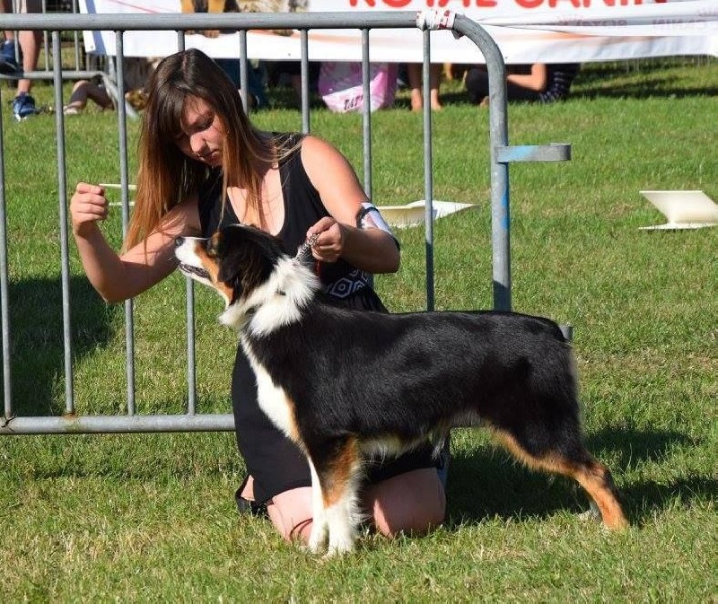 classe puppy: 7 chiots présents (1ère en femelle!) "7 mois, féminine. Bon type, jolie construction, ossature et angulation. DCC. Exc pieds et aplombs sors les coudes, joli mouvement."