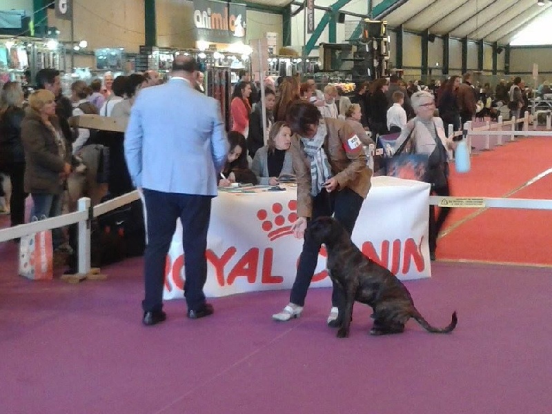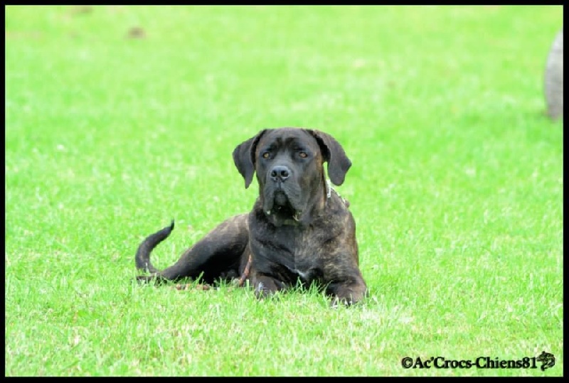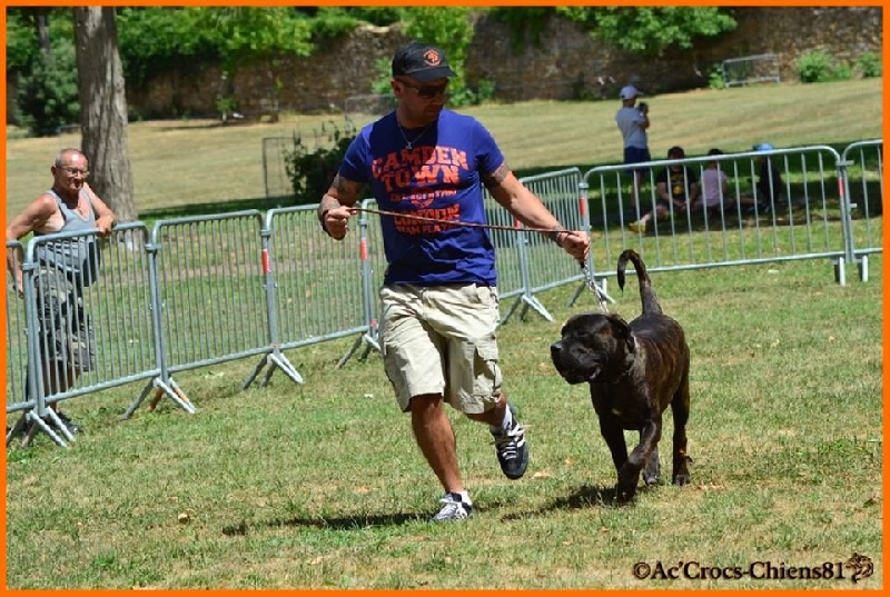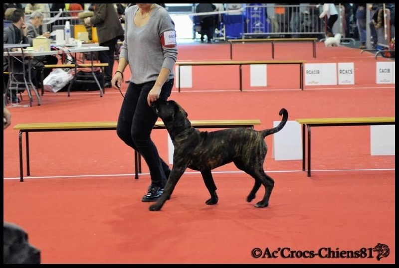 -DCC-Testicules OK-ligne de tête divergents, chanfrein un peu long-Exc encolure et dessus-Exc aplombs-pas beaucoup de fanon-Exc mouvement.
