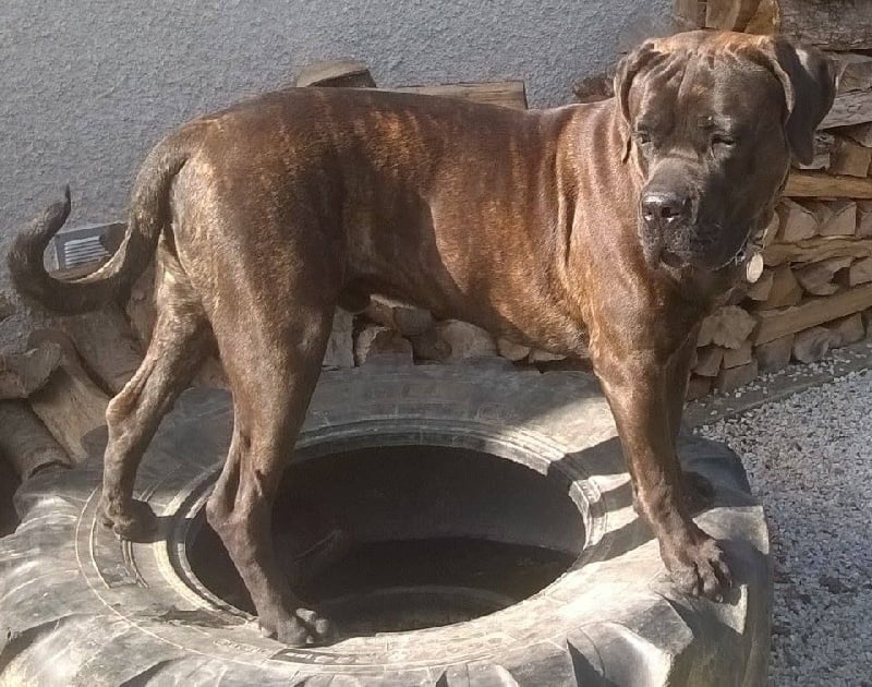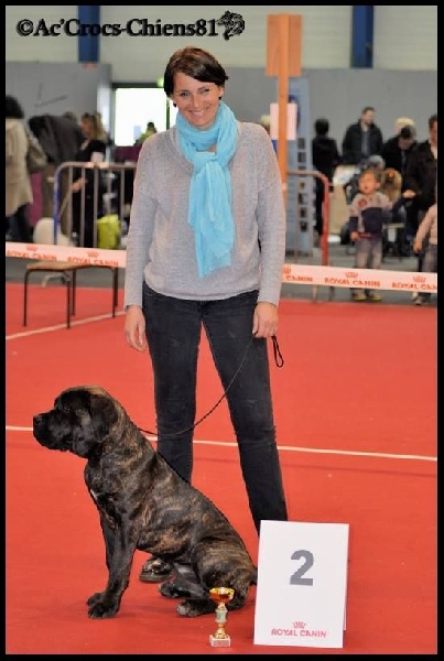Mâchoire n'a pas basculé, Grand avec une belle robe.Poitrine aux coudes, ossature moyenne pour la taille. Manque de puissance à l'arrière. Belle encolure. Tête un peu longue par rapport à la largeur.Mouvement correct.