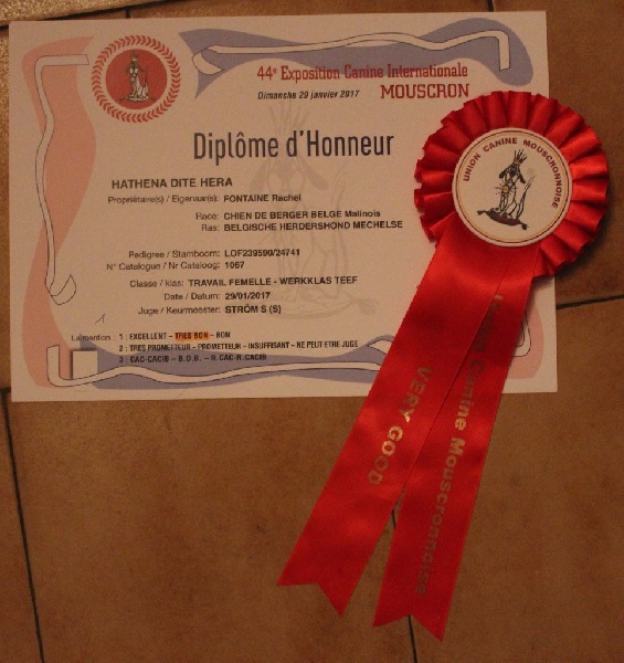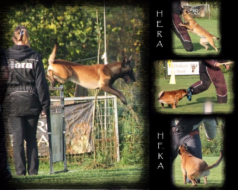 Hèra est une chienne très joueuse, et proche du maître, nerveuse, très à l'écoute, très demandeuse en travail, protectrice et bonne gardienne, sauteuse, aime mordre.