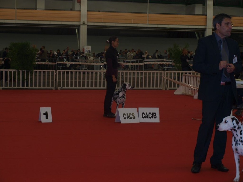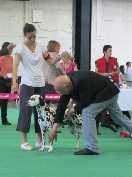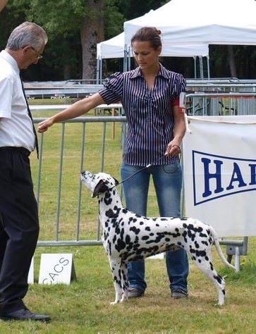 Classe ouverte femelleDCC, B tête, B crâne, B ?il, B oreille, B sortie d'encolure, un dos préféré plus tendu, avec une B épaule, B aplombs, B angulation, B fouet, quelques tâches convergentes, joli mouvements.