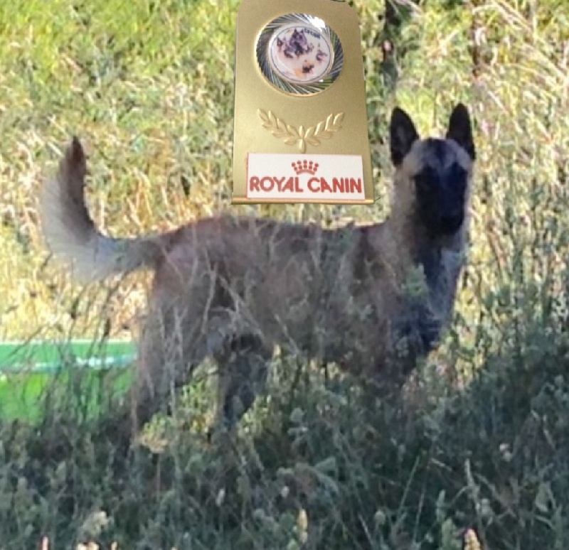 Denture complète en cisaille taille moyenne, fauve moyennement charbonné, tête médio-ligne bien masquée, stop modéré, chanfrein rectiligne de bons volumes, excellent masque, excellent corps bonne sécheresse, petits oeil brun en amande, excellente petites oreilles bien porté, encolure fuvenile garrot sort, dos tendu, excellente croupe, excellent fouet long, poitrine au coudes, cote un peut ceintré pour l'âge, excellent poitrail, ossature moyenne, excellent sujet, angle postérieur correct, petit pied compact, excellente allures en ligne, excellent caractère