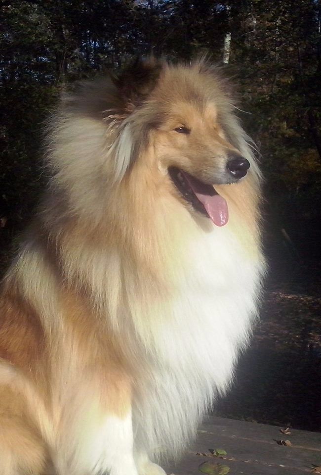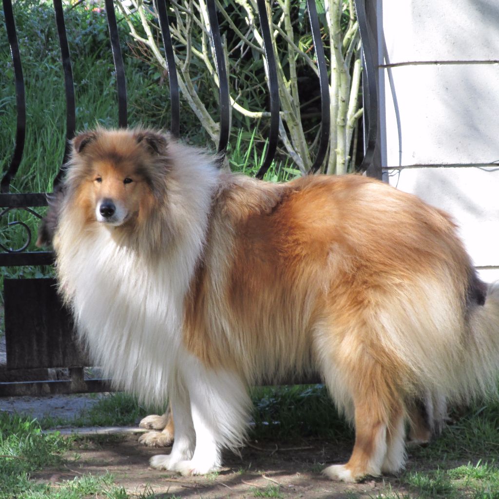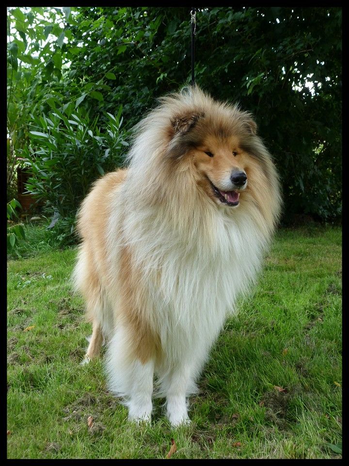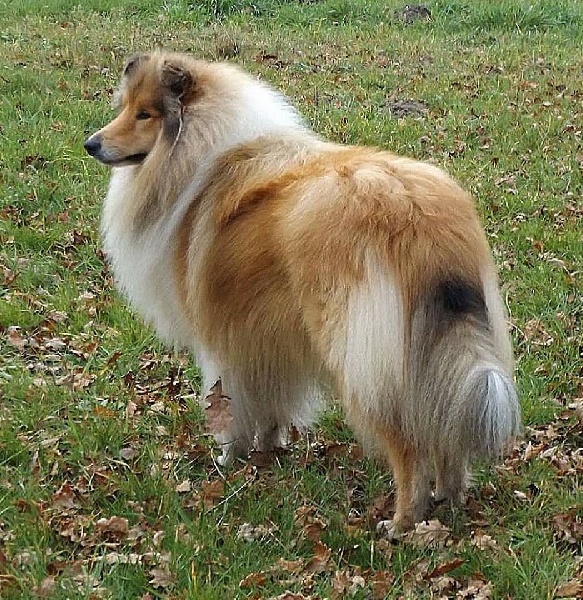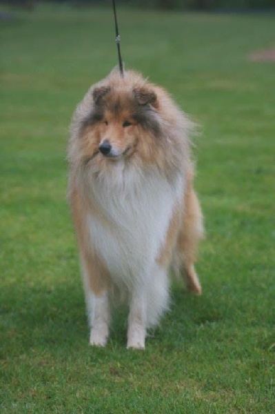 Petit modèle au minimum du standard mais bien proportionné et harmonieusement construit -DCC- Jolie tete très expressive- exc ossature aplomb, angulations corrects -Jolie fourrure-Fouet de bonne longueur- Allures et port de fouet correct.TAN : excellent 16/16