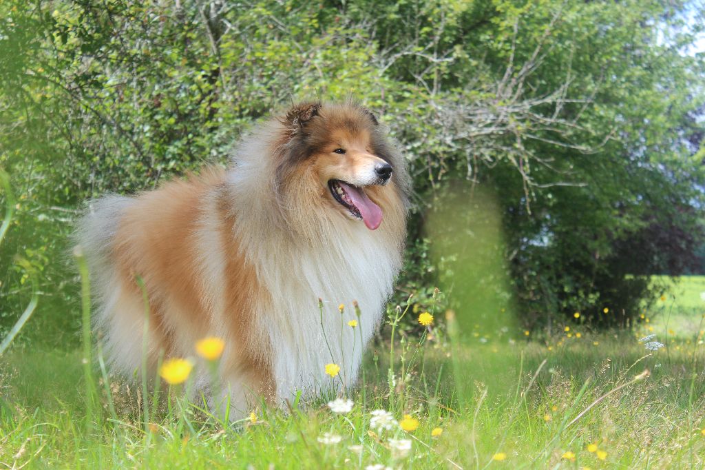 Chien Colley à poil long Je suis born to be alive de la Déesse des Moissons