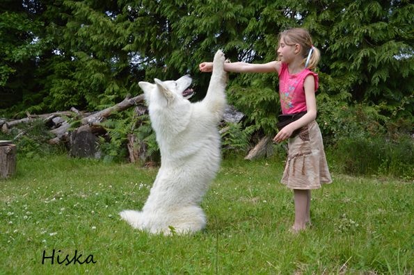 Hiska a été présentée par ma fille de 8 ans.dentition complète, jolie tête féminine dans son ensemble, oeil un peu clair, très belle expression, chienne bien construite dans son ensemble, très bonne ossature, excellent dos, la poitrine devra finir de s'éclater, belle couleur, excellente démarche, sujet bien présenté.RCACS