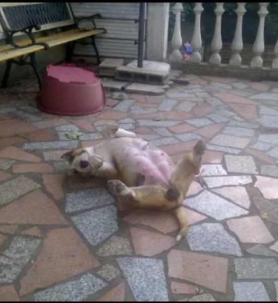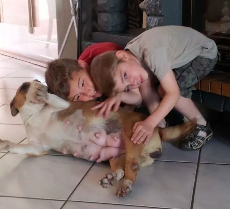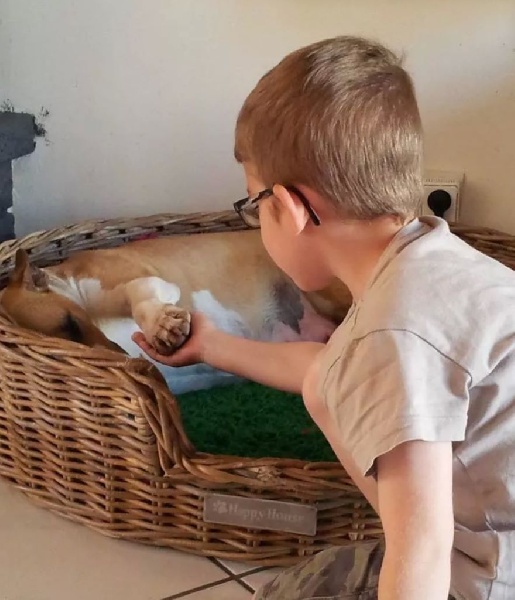 Donna-Kaïya caractère en or avec tous les êtres vivants, construction osseuse parfaite, 24kg, tête plus large qu'ovoÏde et aucune cassure, fauve panaché blanc.