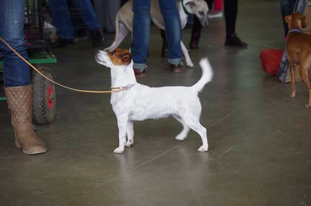 DCC. Jolie tête féminine. Excellent oeil. Bonnes oreilles. Excellentes épaules. TB dos. TB poitrine. Un peu d'air sous les coudes. Excellent avant et arrière main. Bon fouet.