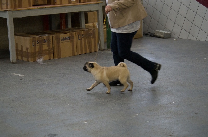 Classe Puppy 1 ère très prometteurB tête qui devrez s'éclaterB forme yeux et couleur narines légèrement fermées B forme de mâchoires TB nature de poil , B forme de piedsQueue B attachée en spiraleTB démarche en ligne