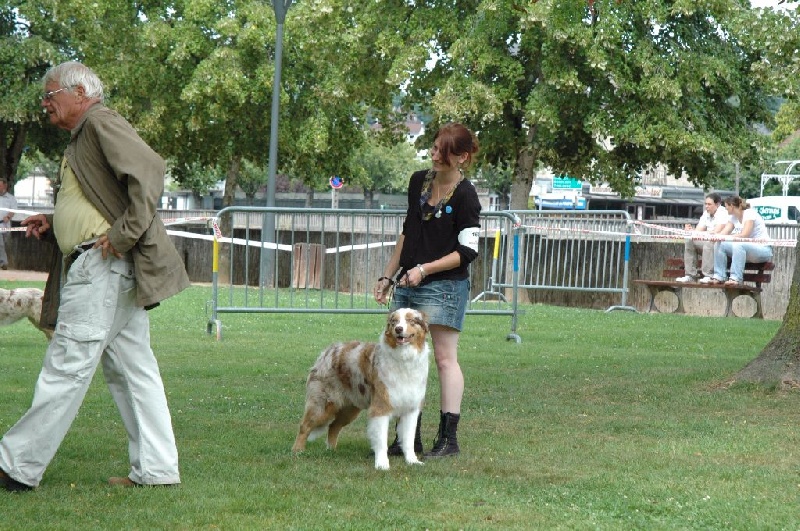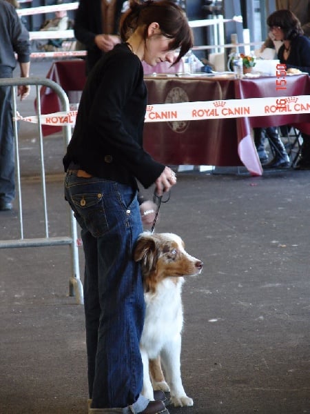 Grande chienne 54cmManque 1PC2 inf DTête de forme correcte Bonnes oreillesOeil de bonne couleur en rapport avec la robe rouge merleTB encolure - B dessus dessousTB aplombs et angulationsLe poile est trop ébourifféB ossature - Mouvement correct