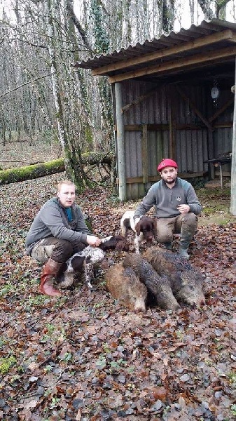 Illux est un chien complet, il chasse petit et gros gibiers, excel aux bécasses, il mène, tient très bien le ferme et est plutôt mordant sur le poil ( sangliers/chevreuils).