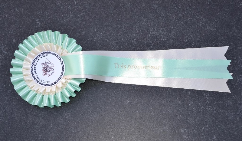 Excellent sujet, excellentes proportions, excellent crâne, excellent rapport croupe/chanfrein, excellentes pigmentation et denture, excellentes épaules et avant-mains, excellentes poitrine et ligne de dos, excellents postérieur et attache de fouet, excellente robe, excellente démarche.