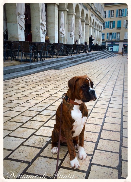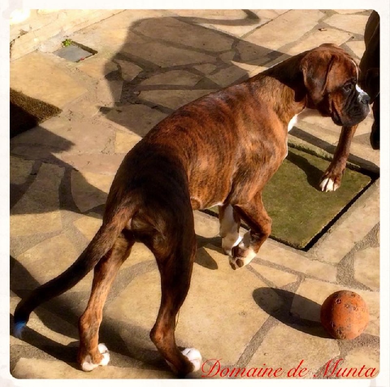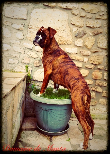 Robe cuivrée or aux bringeures sombres marquée en blanc