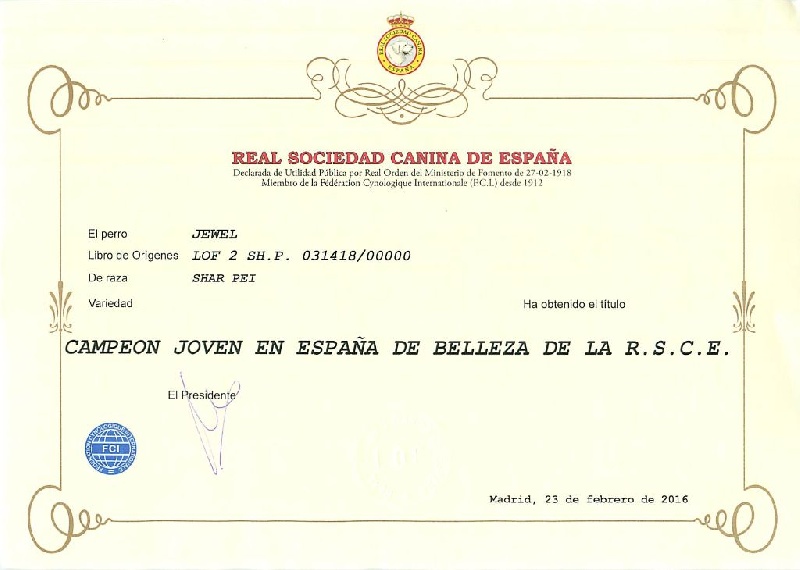 Très jolie tête - Belle expression - Bonne largeur de crâne - Petits youx foncés bien enfoncés - DCC - Oreilles petites bien implantées et bien dirigées - Bonne sortie d'encolure - Exc. poitrinen avant main et arrière main - Exc. ligne de dessus, attache et port de queue - Excellent caractère - Joli sujet - 1ère EXCELLENT - CACS DE LA SPÉCIALE DE RACE - MEILLEUR DE RACE (BOB)