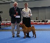 Red bitch with nice head - Good expression - Nice neck and shoulders - Very good coat texture - Very high setting of tail and tight - Excellent moving - EXCELLENT - First of the intermediate class
