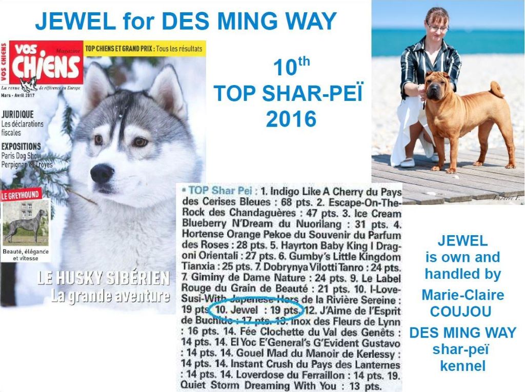 JEWEL est classée 10ème au Challenge Vos Chiens 2016 après de nombreuses participations aux expositions en compagnie de Escape et Indigo ...