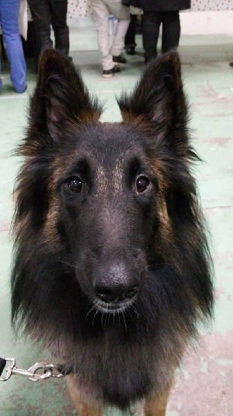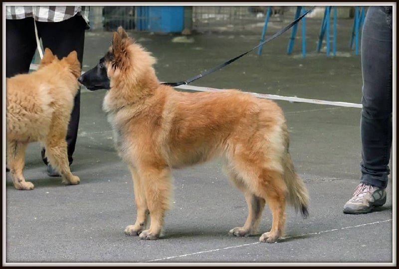 DCC, joli sujet à l'excellente fourrure fauve chaud, tête expressive bien masquée, excellents yeux foncés, bonnes oreilles moyennes bien portées. Qualités de construction avec un corps court, ossu et bien angulé. La poitrine commence à bien se dessiner. Allures correctes qui doivent se délier.