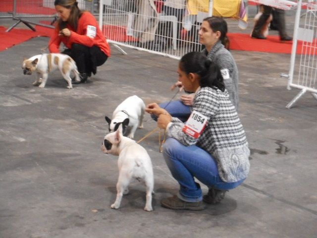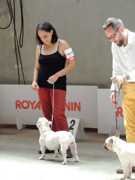 11.700kg Femelle féminine. Belle tête.Oreilles,yeux,nez bien placés. Oeil droit pas dans la couleur,dépigmentation de la paupière. Bonnes rides. Museau large. Bon menton. Joli avant-main.Les côtes peuvent être plus ronde. Ligne de dos un peu plate,rein un peu long. Queue un peu haute. Arrière-main OK. Bonnes angulations. Bon mouvement.