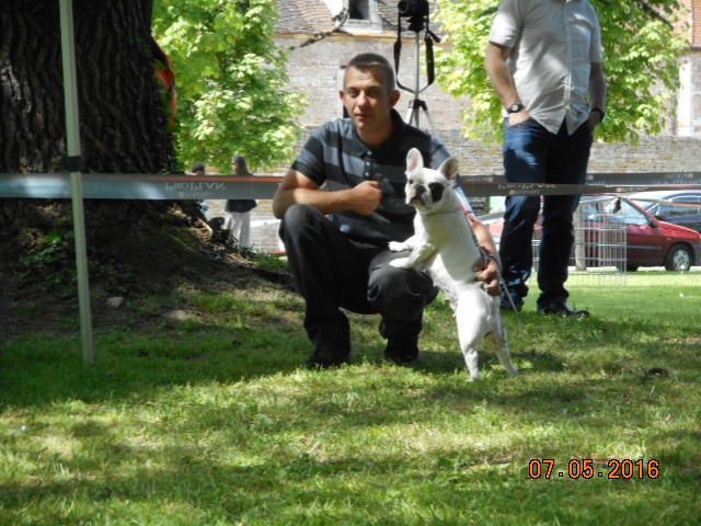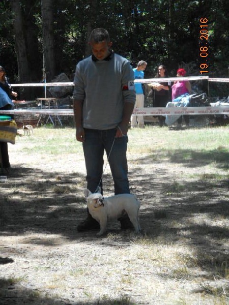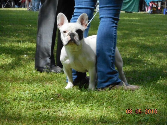 11.300KGConstruite en lice - Solide par l ossature - AV bien ouvert - EX poitrail,il faudrait un peu plus de substance au niveau du ventre - AR solide avec jarrets marqués.Queue présente,mais la croupe devrait être plus inclinée - l'encolure est grande et pas typique de la race - Jolie tête - Yeux foncés - EX crâne,oreilles de bonne forme mais légerement basse - Un oeil à la paupière non pigmentée - Belle machoire - Bien remouchée - EX babines ,truffe et stop - Se déplace bien.
