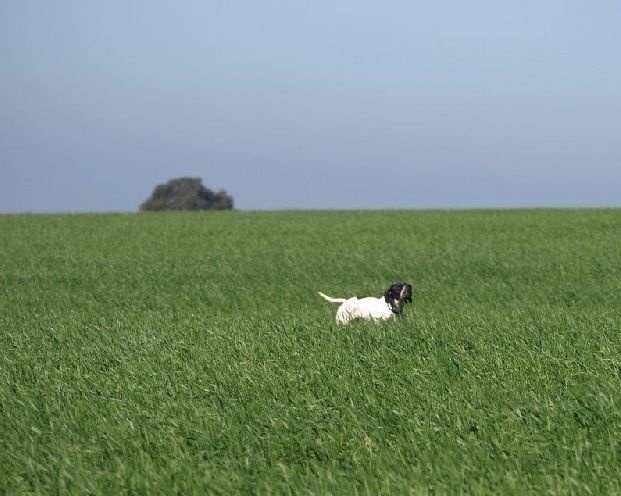 Un très bon et très beau chien, des allures magnifique. Prend trois points sur perdreaux et un respect de lièvre avec un peu d'appui à l'envol.Un peu de dressage à peaufiner.