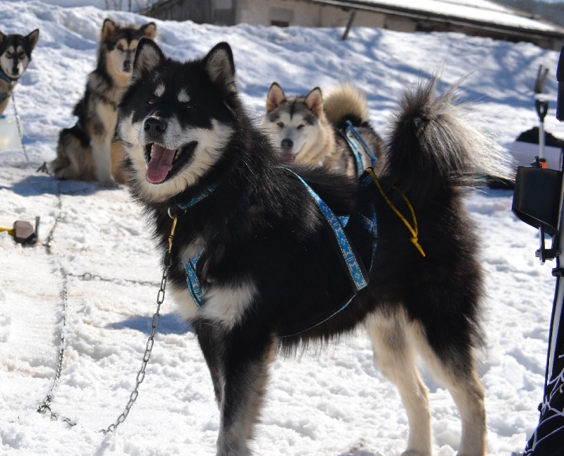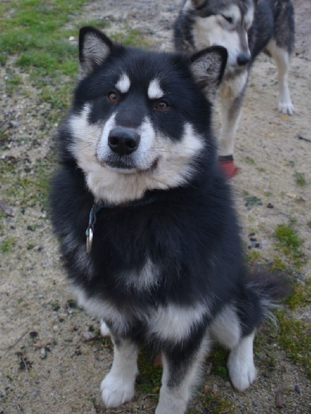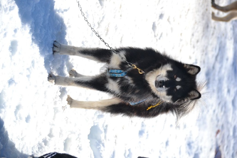 Hope est un petit gabarit, il vient de l'Elevage Of tribal Laws, connu pour produire des chiens au caractère très doux et sociable. Hope n'échappe pas à la règle, c'est un amour de chien, très proche de l'homme, adorable avec les enfants. Avec ses 31 kilos c'est un chien très léger et très véloce, il est en tête de l'attelage, il est très intelligent et a très vite progressé dès ses premières sorties après que nous l'ayons adopté à l'âge d'un an. Il est indemne de dysplasies de coudes et hanches, et de maladies oculaires. Il est par contre porteur du gêne à poil long et ne pourra donc être l'étalon que d'une demoiselle qui ne porte pas le gêne !