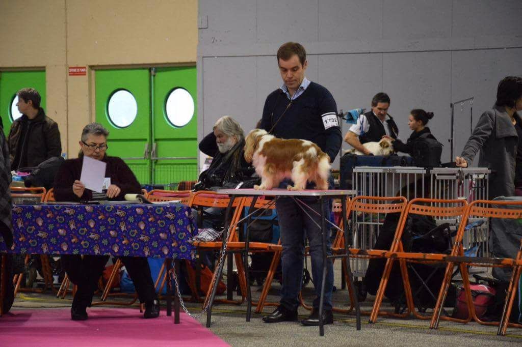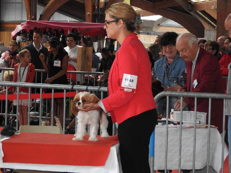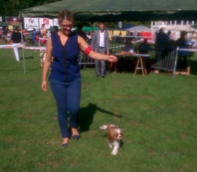 Petit sujet bien proportionné, jolie tête typique mais le stop n'est pas assez ouvert. Le chanfrein ne doit pas être plus court. Excellent pigmentation, DCC, jolie sortie d?encolure, excellente attache de fouet, Excellentes angulations avants/arrières.Excellente qualité de fourrure, couleur très riche. Sujet présenté en excellente condition, se déplace bien, mouvement élégant. Excellent port de fouet à la marche.