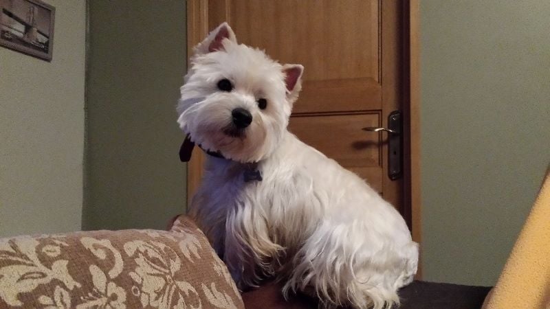 Chien West Highland White Terrier TR. Ipso Du paysage forestier