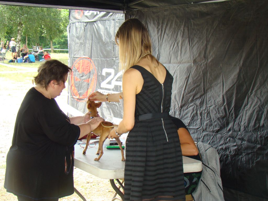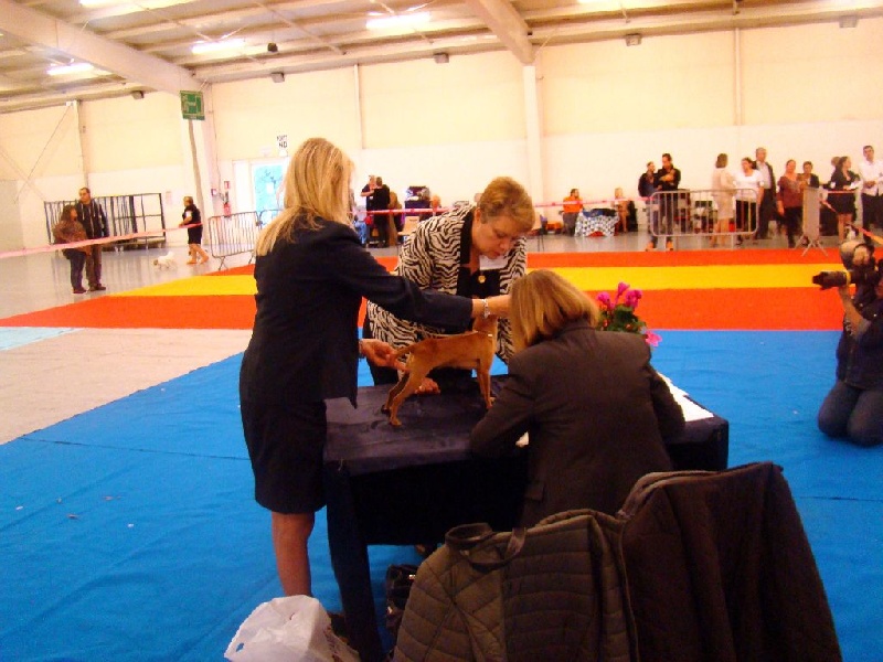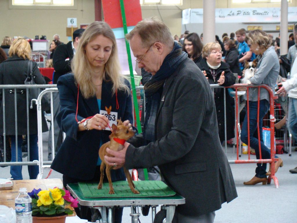 Classe ouverte : "Sujet bien proportionné. Jolie tête. DCC. Jolie encolure. Ligne de dessus correcte. Exc attache de fouet. Angulation correctes. Démarche correcte"