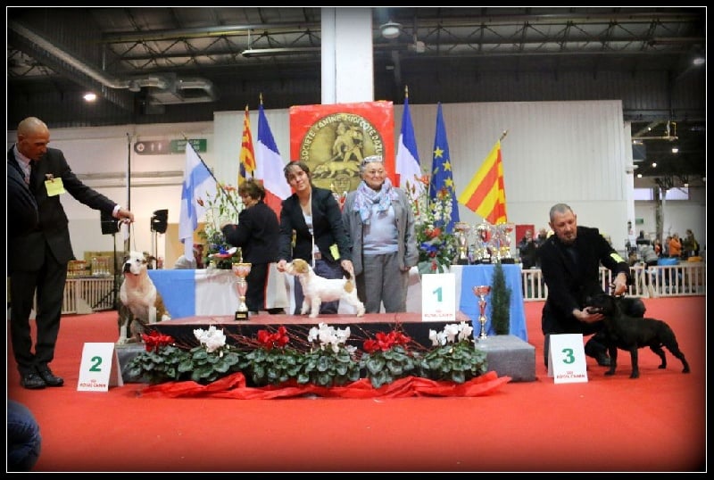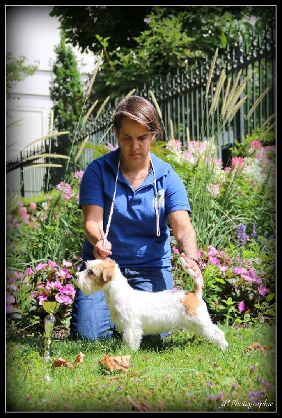 DCC, jolie tête, bel oeil sombre, bonne pigmentation, exc oreilles, très belle encolure, corps bien compact, bonne implantation de fouet, exc poitrine, très bonnes angulations ossature et applombs, pieds compacts, joli type, belle présentations, caractère terrier, très belles allures avec beaucoup de fierté, très sure d'elle