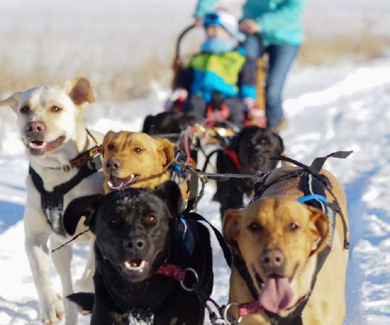Cette jolie chienne a la particularité de nous émouvoir par sa présence, sa fidélité et son enthousiasme. Ses capacités à rapporter à l'aveugle sont étonnantes. Au traîneau, elle est infatiguable !