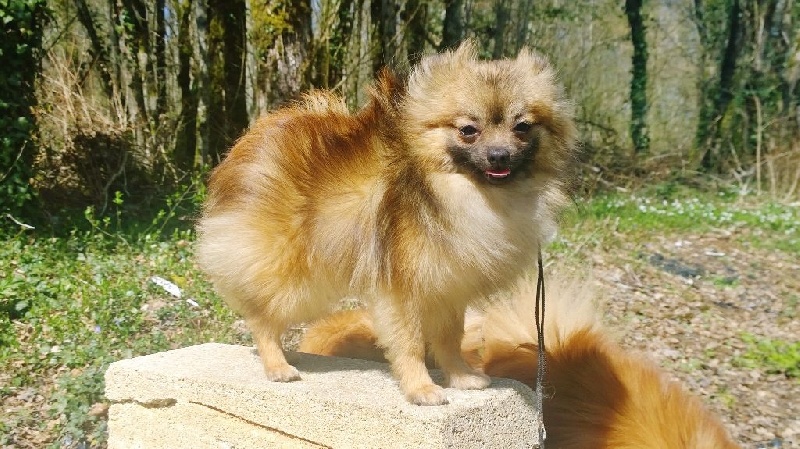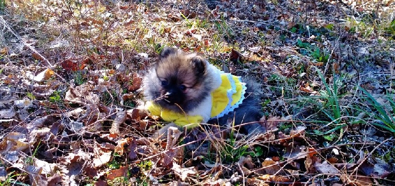 Le frère de Exquise était poméranien. Exquise, elle est allemande avec un museau très court.