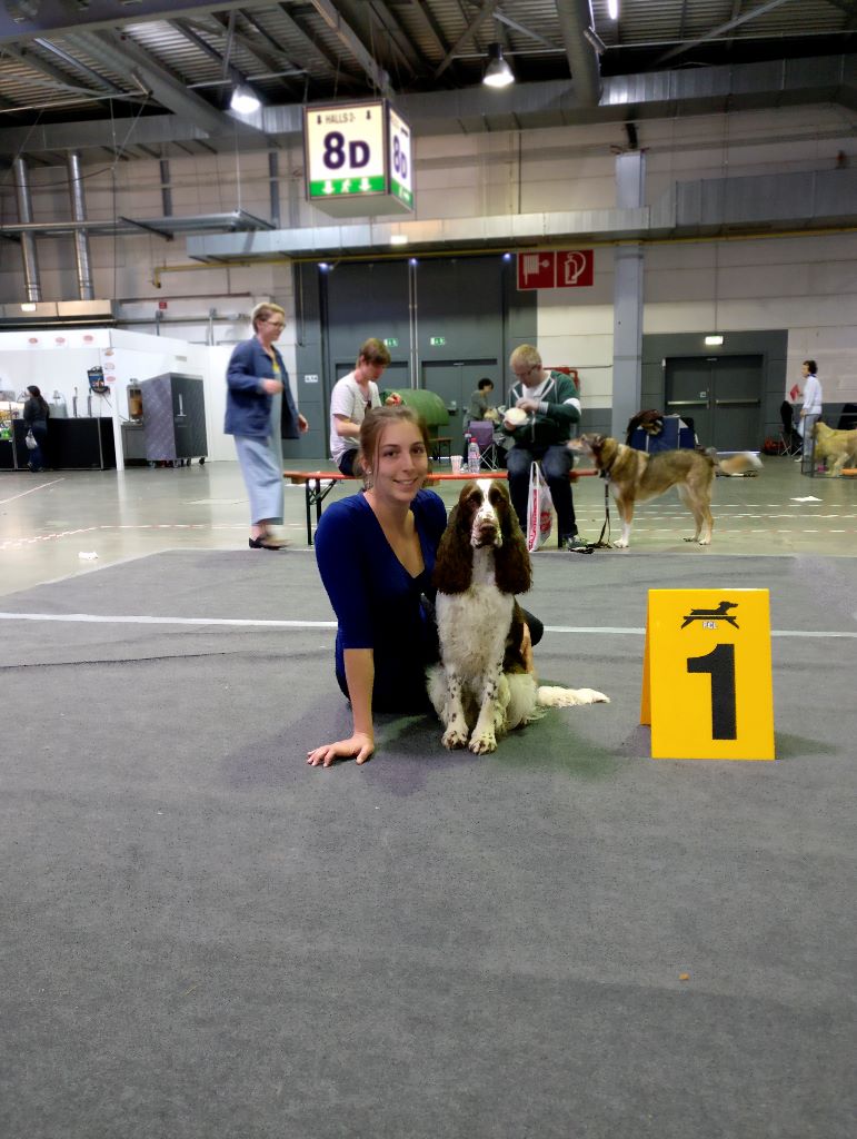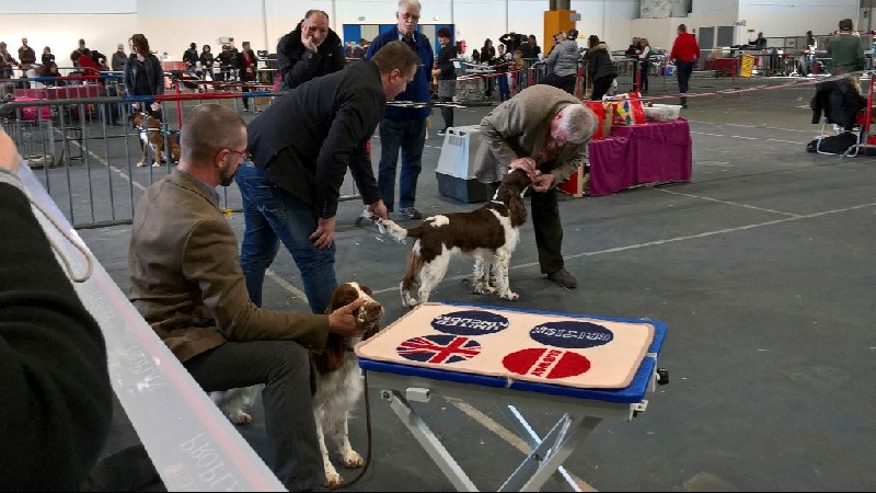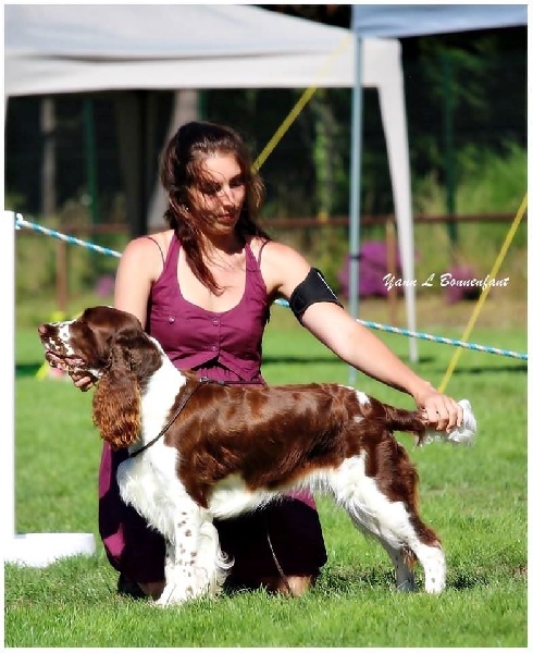 chienne typique - tête bien sculptée - bonne expression - bonne couleur d'?il - ex épaules ossature et applombs avant - pied qui pourraient être plus sérrés - bonne côtes - bien compacte - croupe ronde - bonne insertion de la queue - bouge avec joie et efficacité