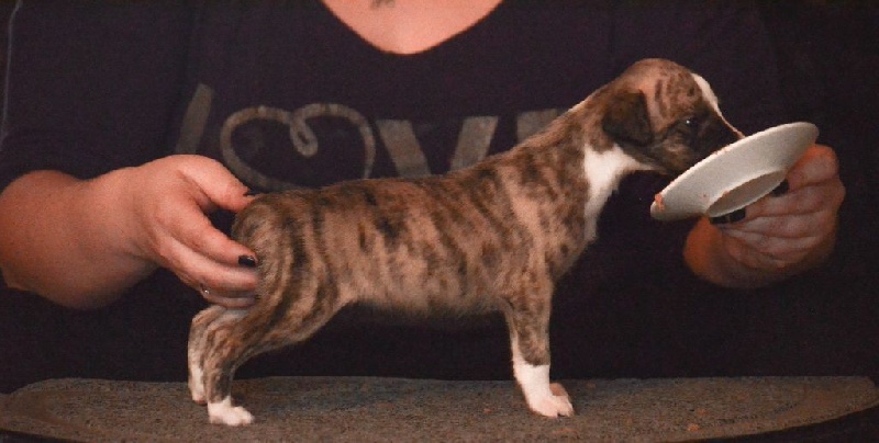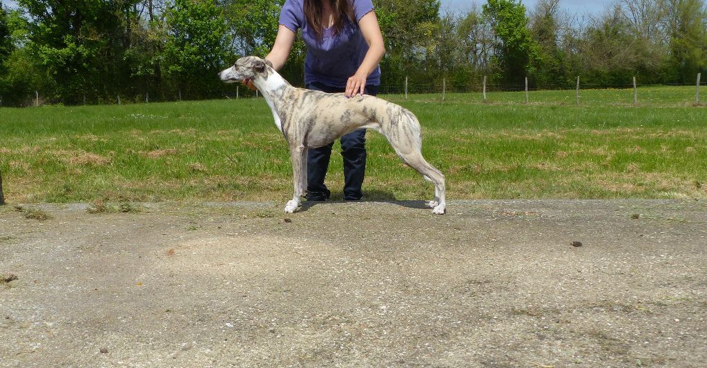 Joli sujet. Exc format. Exc tête. Exc pigmentationExc oreilles. Exc encolure. Exc dessus dessous. Exc avant/arrière. Exc fouet. Exc mvt face et profil. Très aérienne dans son déplacement.