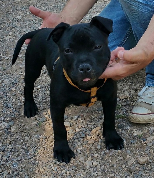 Chien Staffordshire Bull Terrier d'spain fuego negro Indiana