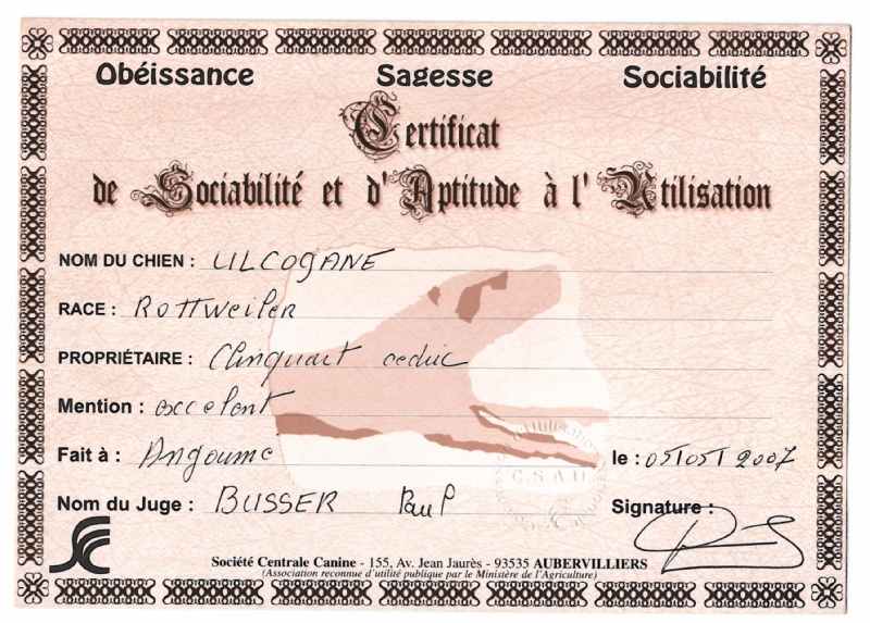- CERTIFICAT DE SOCIABILITE ET D'APTITUDE A L'UTILISATION