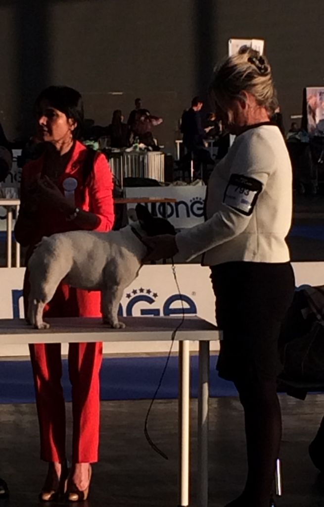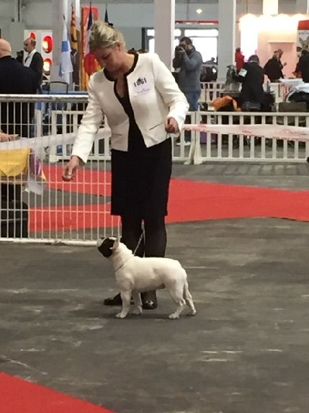 Cette poupée au blanc immaculé avec un pedigree prestigieux (consanguinité sur VITO ET VICKING DU FIACRE DE MONTPARNASSE , deux frères qui ont marqué la décennie du monde du bouledogue ) est une miraculée de la vie ! De ce fait c'est un peu la chouchoute de la maisonnée...