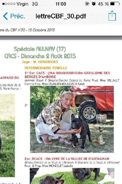 Chien Bouledogue français Jina bouboubrigida géraldine Des Berges D'amboise