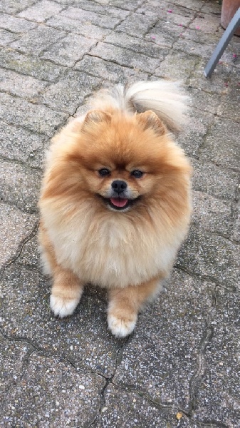 Type pomeranian, belle ossature bien proportionnée,mouvement correct.