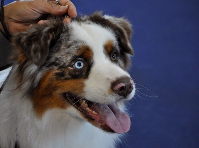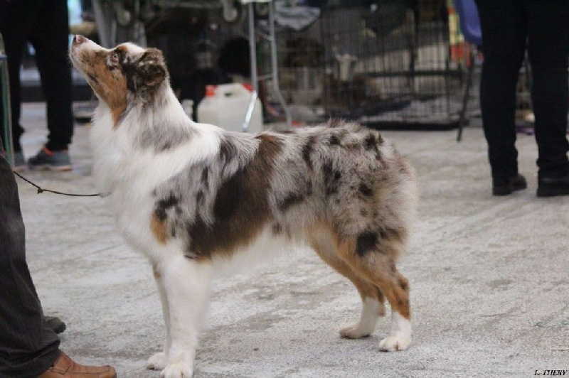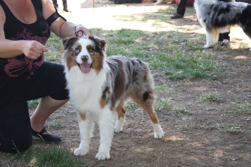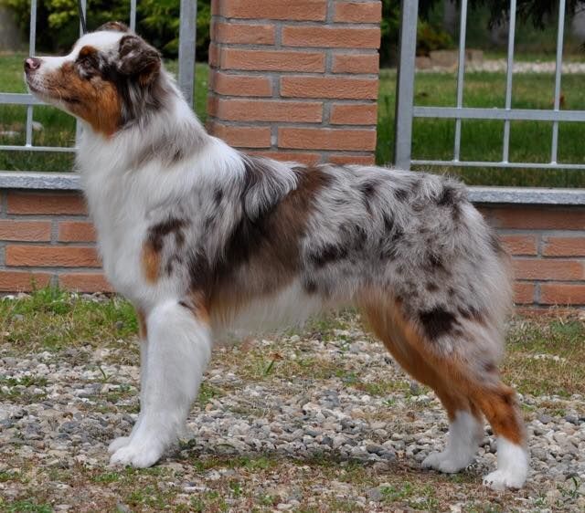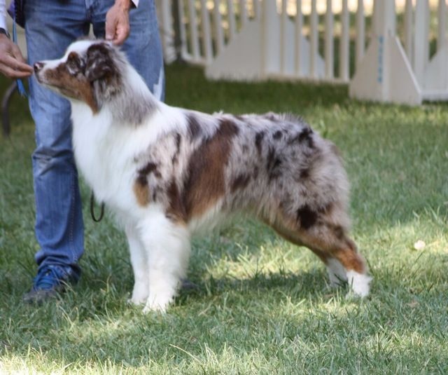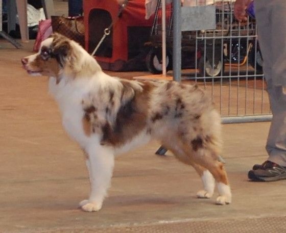 Rouge merle, au regard vairon très incisifExc oreilles, j'aimerais un stop moins fort, une bouche un peu plus sècheen dessous excellente constructionsuperbes allures