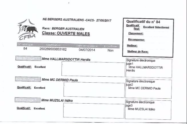- 1er Excellent classe ouverte, CAC, CACIB, BOB, BOG