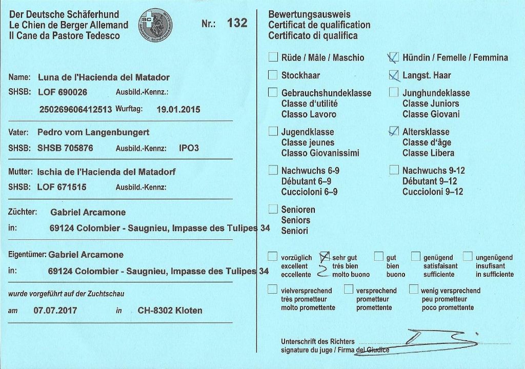 Chien Berger Allemand Poil Long Luna De l'hacienda del matador