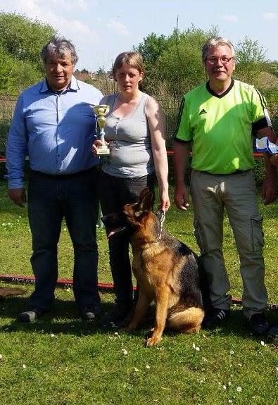 Grande chienne puissante, Excellent type de femelle, excellente pigmentation, expressive, bonne disposition de l'avant main, bonne ligne de dessous et dessus, bonnes angulations AV et AR, Applombs corrects, Excellent mécanisme de marche