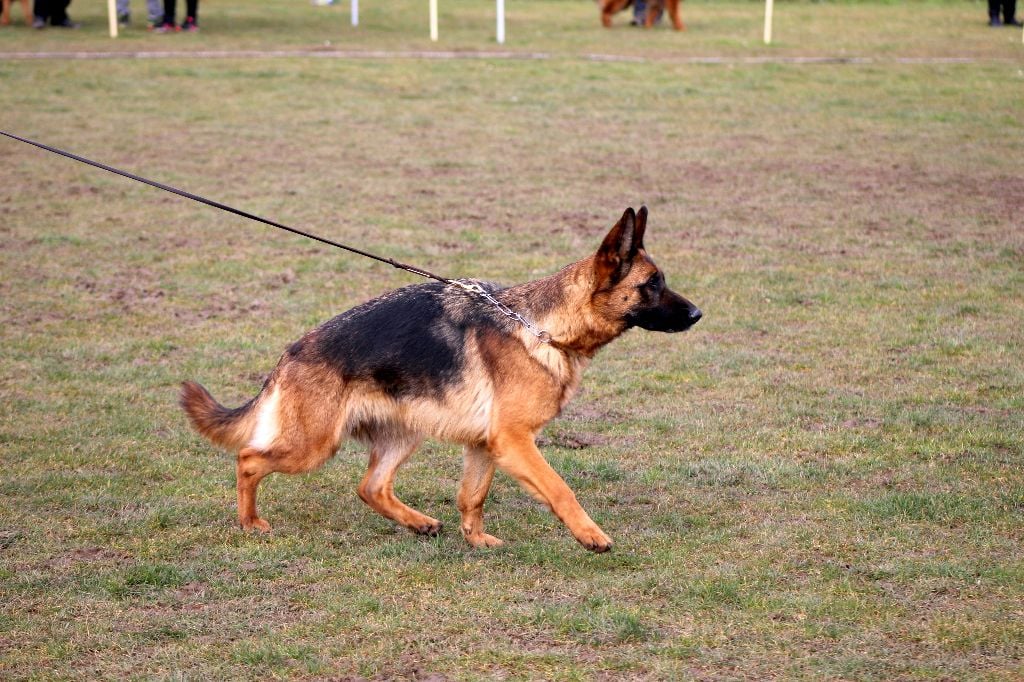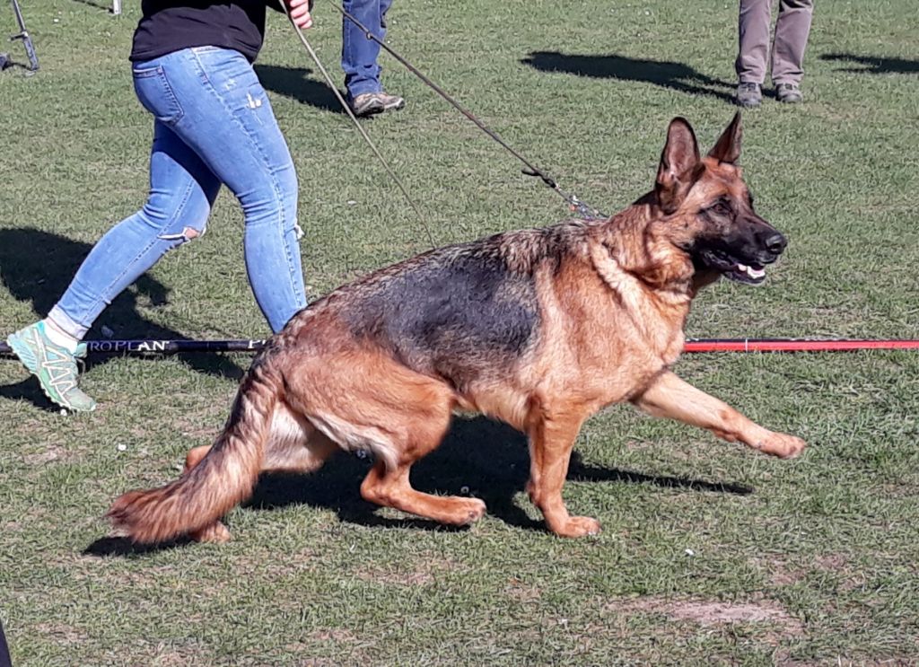 DTC, bonne pigmentation, tête bonnes proportions, yeux bonne couleur, forme amande, oreilles bien portées, bonne ligne de dos, bonne croupe, poitrine bien développée, bonnes angulations et aplombs, manque de sous poils (en fin de mue) , allures parallèles et dégagées , couvre bcp de terrain et bon fouet