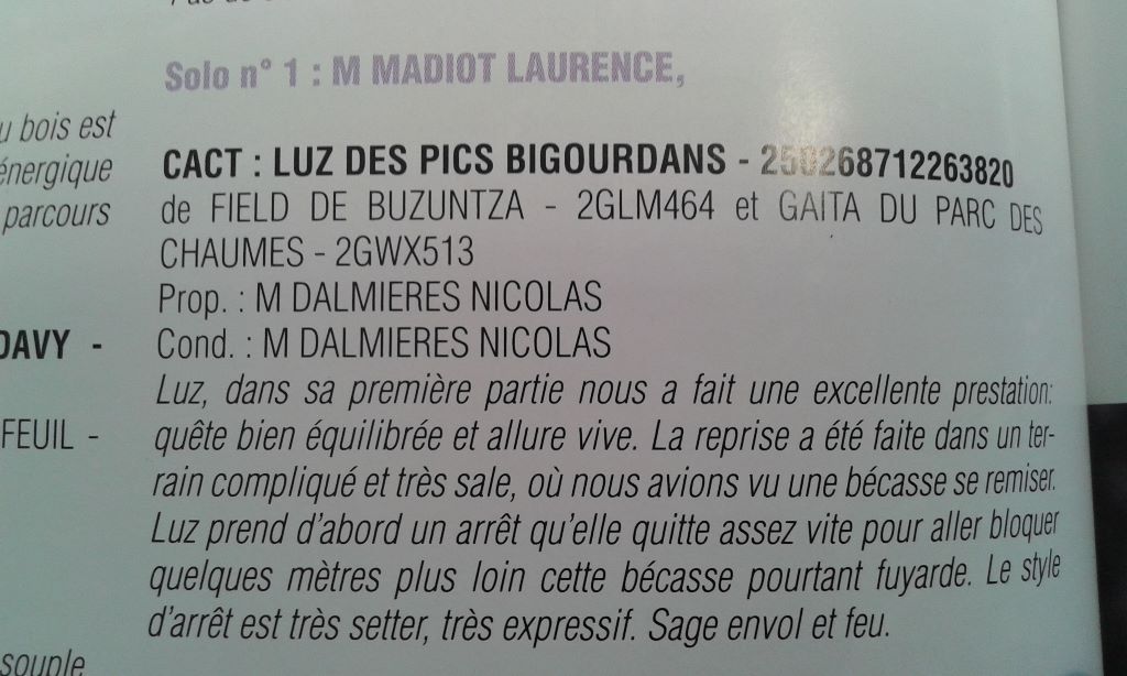 Manifestion : Solo Bécasse - Juge : Laurence MADIOT