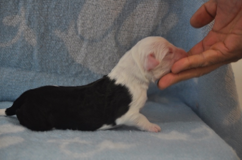 13 mois, très typique. belle tête feminine, oreilles bien attachées, yeux excellents. DCC. exc corps pr son âge. exc angulations et ossature Exc poil pr son âge. les allures sont souples et excellentes