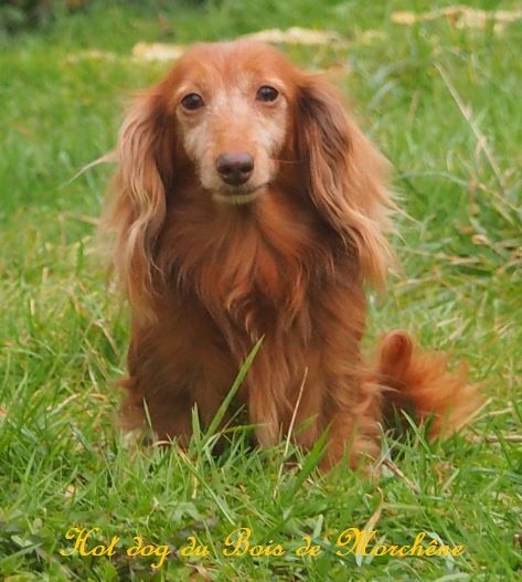 Notre petite teckel s'appelle Hot dog, elle est très sociable apprécie les balades en laisse. Parfois un peu têtu mais très attachante.