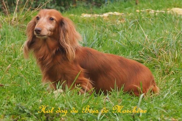 Chien Teckel poil long Hot-dog du bois de Morchène